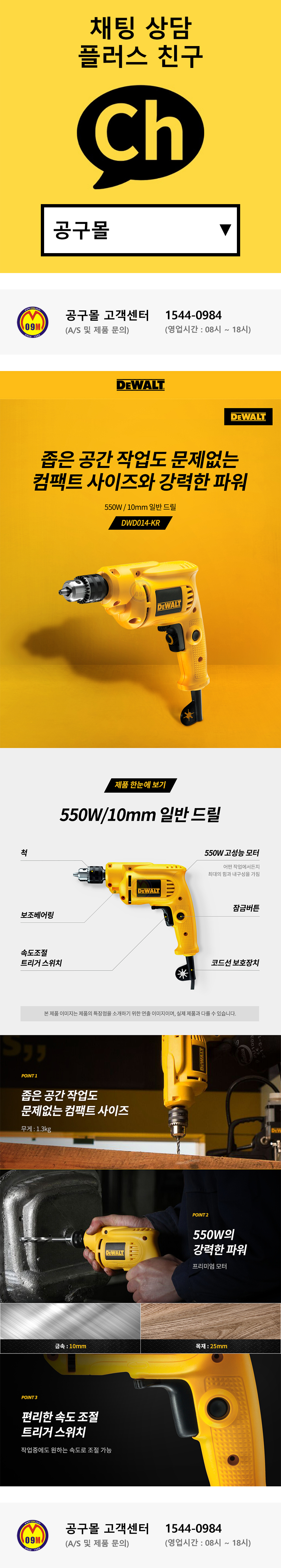 디월트 전기드릴 DWD014 (550W-10mm) 가정용드릴  품절