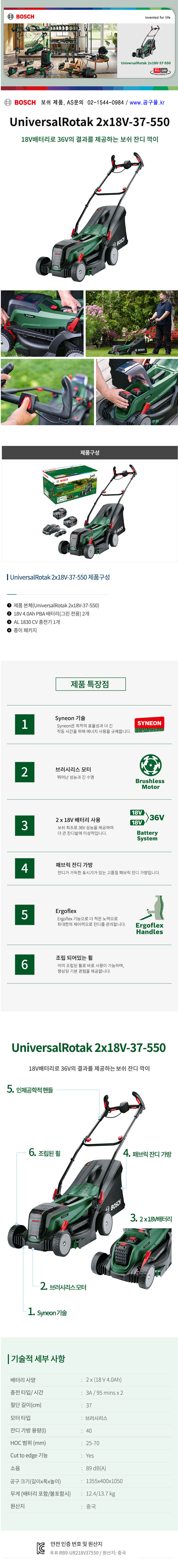 보쉬 18V 충전잔디깍기 UniversalRotak 2x18V-37-550 (18V/4.0Ah) 06008B9EB0, C 538-9045