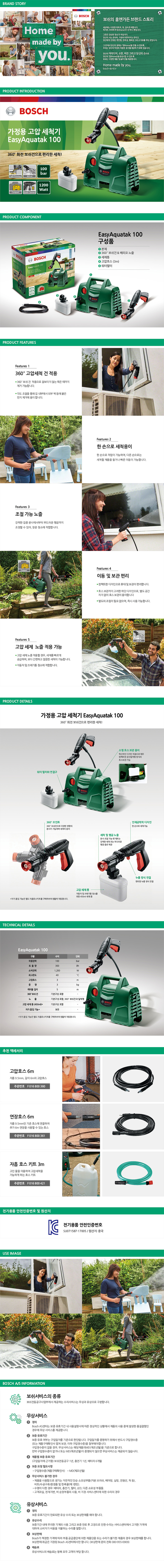 보쉬 고압세척기 Easy Aquatak 100 가정용, 휴대용고압세척기,06008A7EB0,C524-0250