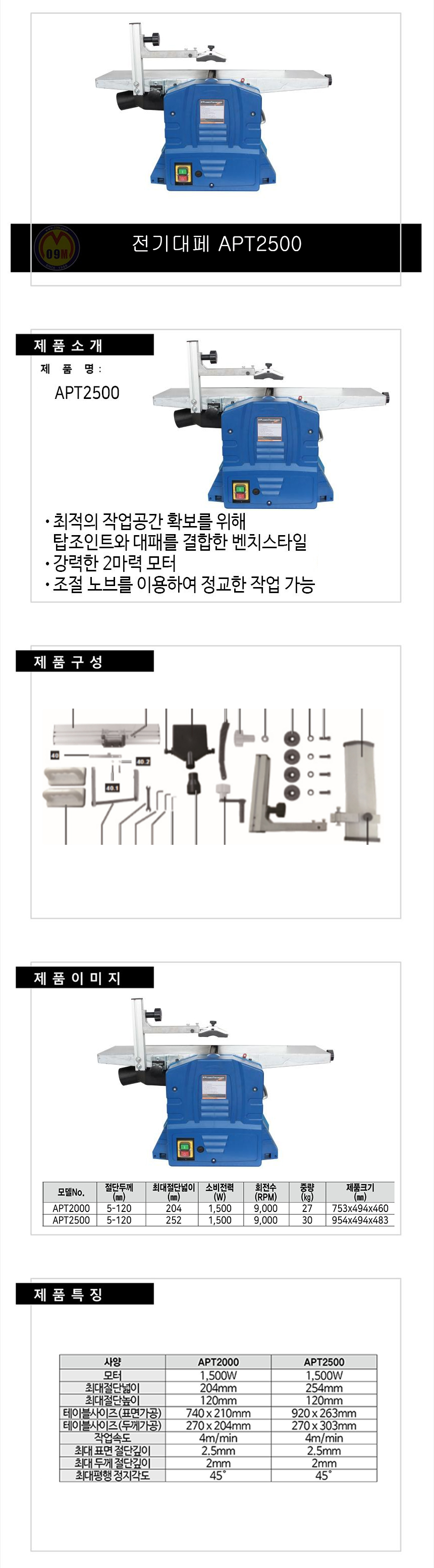 올윈 자동대패 APT-2500 수압, 전기대패, ALLWIN,공구몰,520-2658