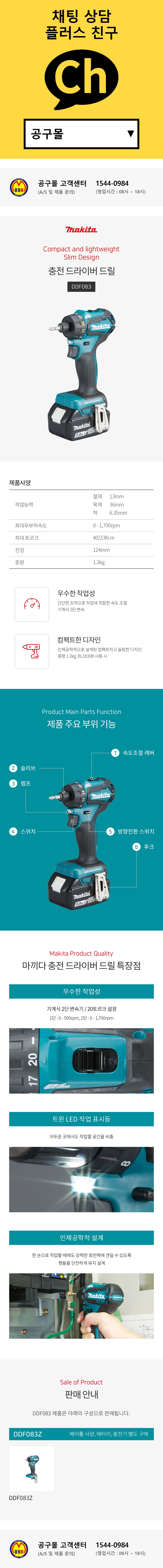 마끼다 18V 무선드라이버드릴 DDF083Z (18V-베어툴) 충전드릴 드라이버