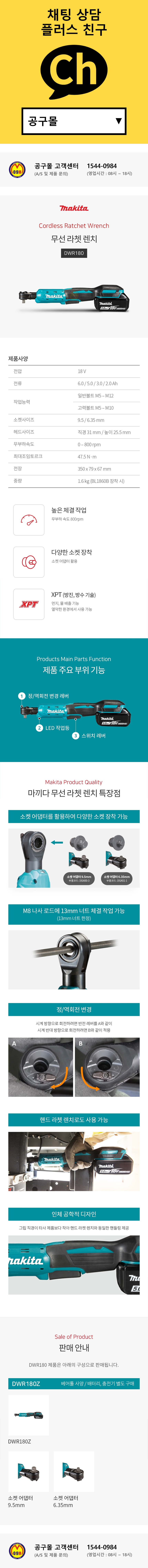 마끼다 18V 무선라쳇렌치 DWR180Z (18V-베어툴) 충전라쳇