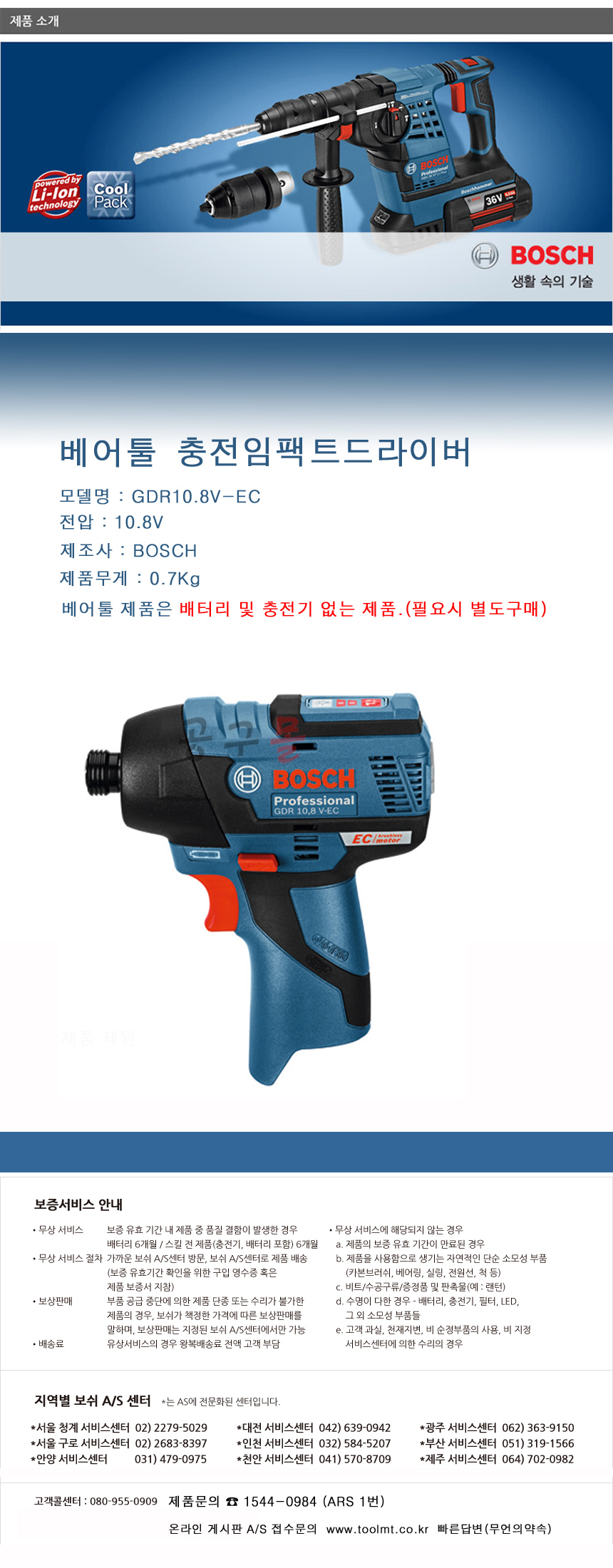 보쉬 10.8V 베어툴 충전임팩트드라이버 GDR10.8V-EC / 보쉬공구,보쉬드릴,06019E00B1