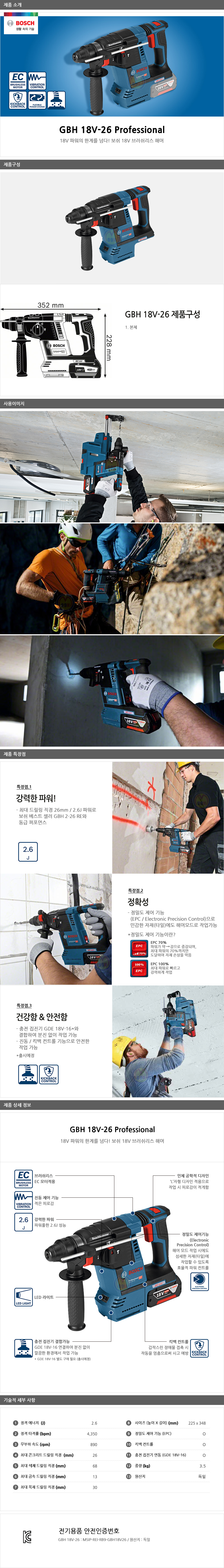 보쉬 베어툴 충전해머드릴 GBH18V-26 / 보쉬공구, 보쉬드릴,보쉬해머드릴,06119090B0