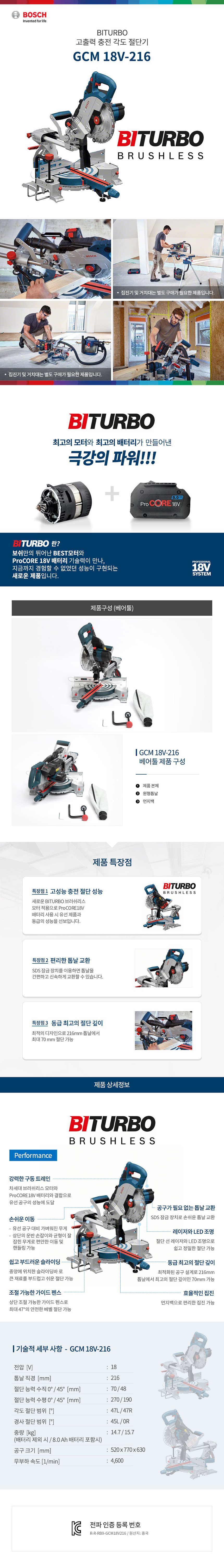 보쉬 충전슬라이딩각도절단기 GCM18V-216 (18V-베어툴) 각도절단기 슬라이딩절단기 적단기,0601B410B0