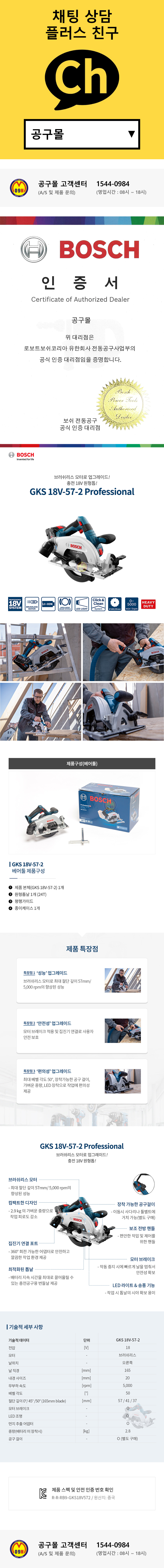 보쉬 충전원형톱 GKS18V-57-2 (18V-베어툴) 충전스킬 톱