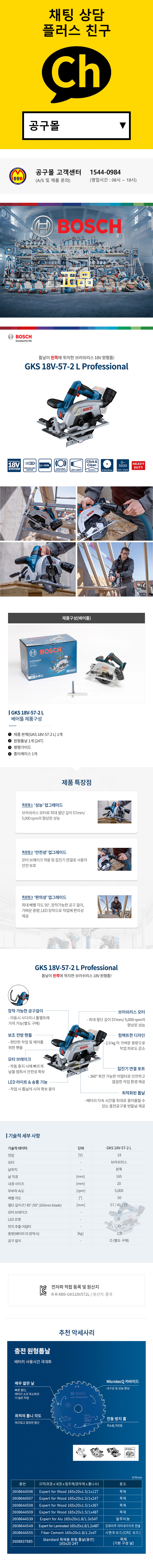 보쉬 충전원형톱 GKS18V-57-2L (18V-베어툴 / 왼쪽날) 원형톱 스킬 충전스킬