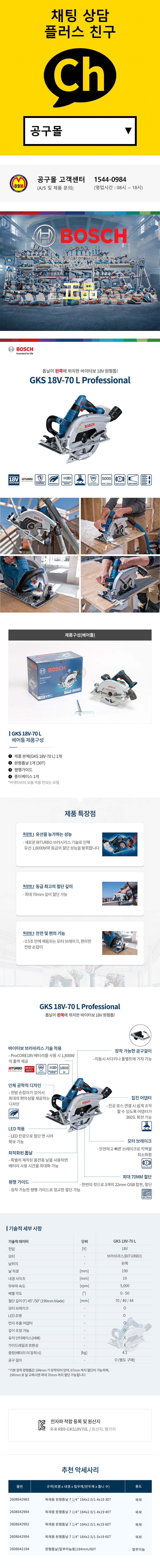 보쉬 충전원형톱 GKS18V-70L (18V-베어툴 / 왼쪽날) 원형톱 스킬 충전스킬