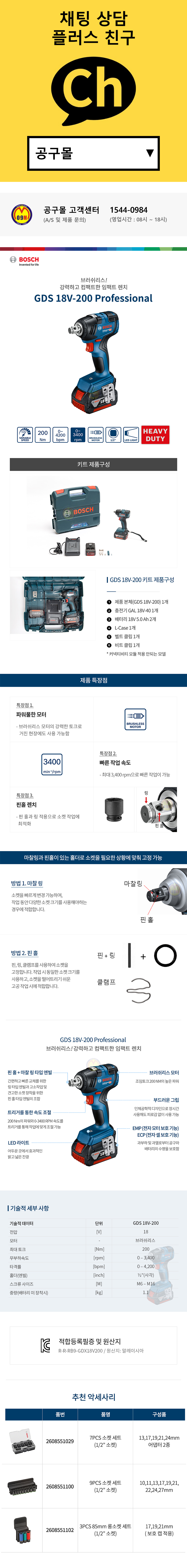 보쉬 충전임팩트드라이버/렌치 GDS18V-200 (18V-5.0AH) 임팩렌치 임팩드라이버