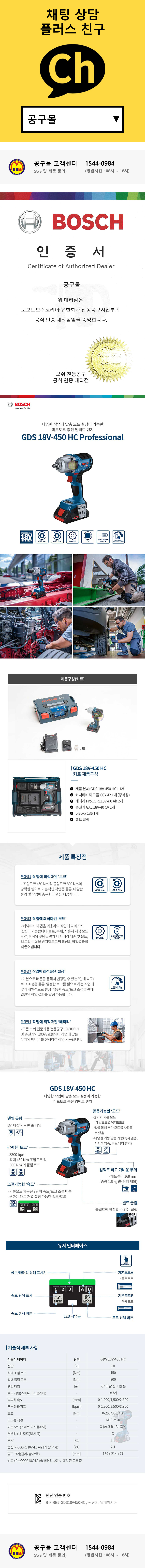 보쉬 충전임팩트렌치 GDS18V-450HC (18V-4.0AH) 충전렌치