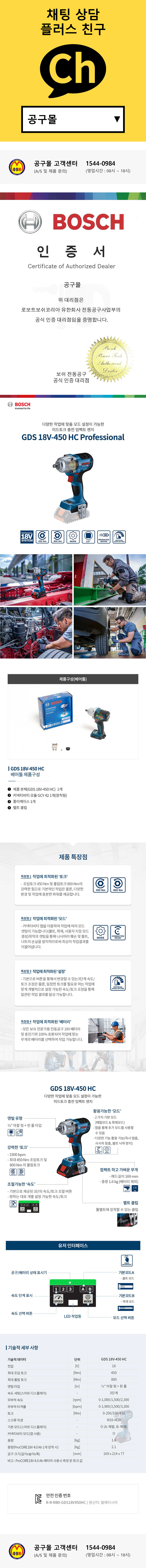보쉬 충전임팩트렌치 GDS18V-450HC (18V-베어툴) 충전렌치