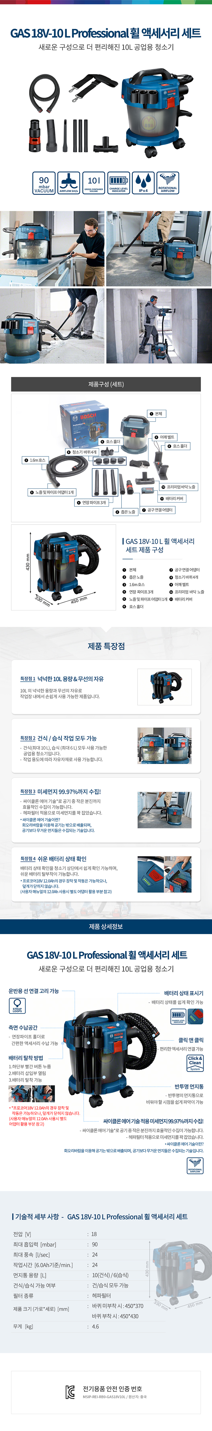 보쉬 충전청소기 GAS18V-10L Wheel set (18V-베어툴) 충전집진기 공업용청소기(MD)