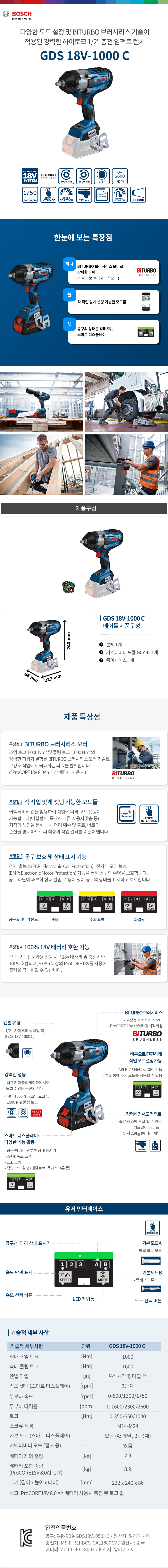 보쉬 충전하이토크렌치 GDS18V-1000C(18V-베어툴) 임팩트렌치 임팩렌치 하이코트