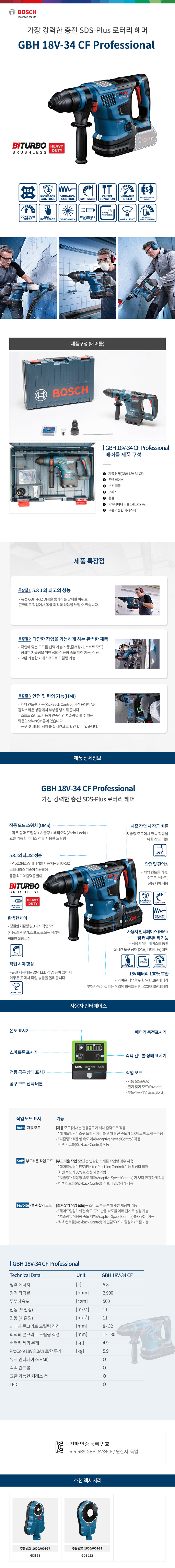 보쉬 충전해머드릴 GBH18V-34CF (18V-베어툴) 충전햄머 햄머드릴