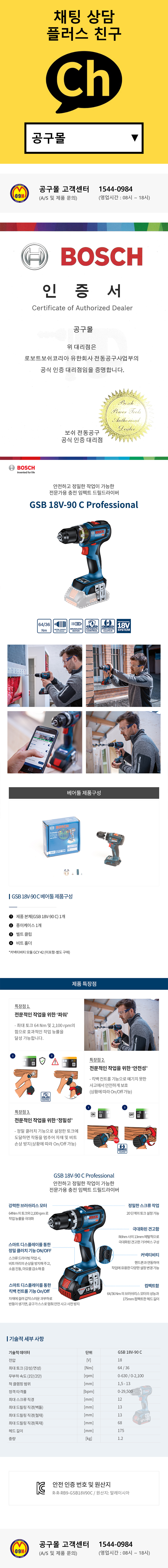 보쉬 충전해머드릴드라이버 GSB18V-90C (18V-베어툴) 햄머드릴 충전공구 가정용공구