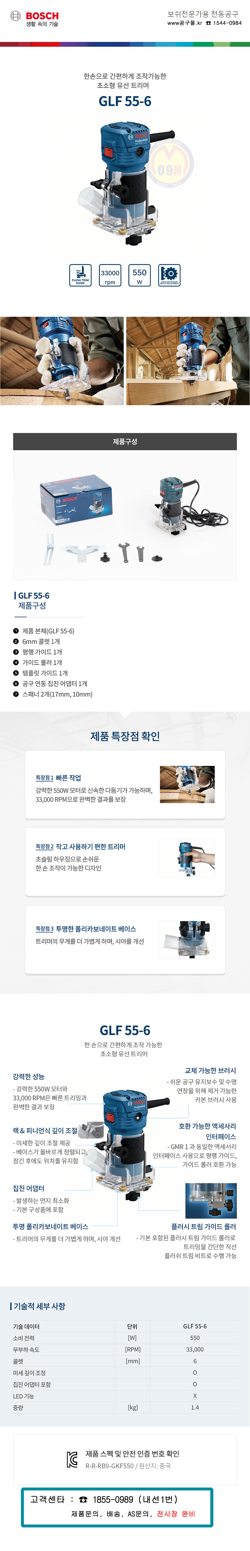 보쉬 트리머 GLF55-6 550W (콜릿6mm,1.4Kg) BOSCH, 라우터, 루터기, 06016A00B1