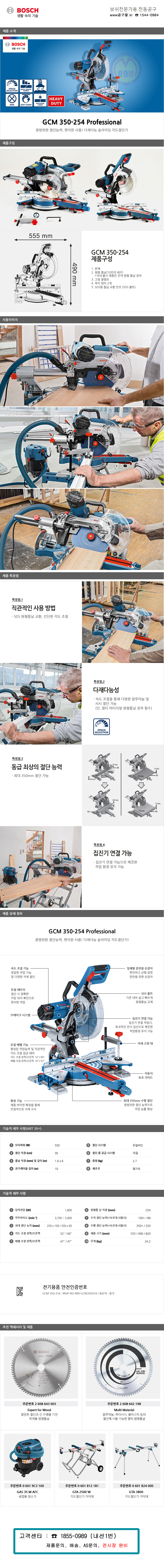 보쉬 슬라이딩 각도절단기 GCM340-305D (1800W-305mm) 목공용 절단기