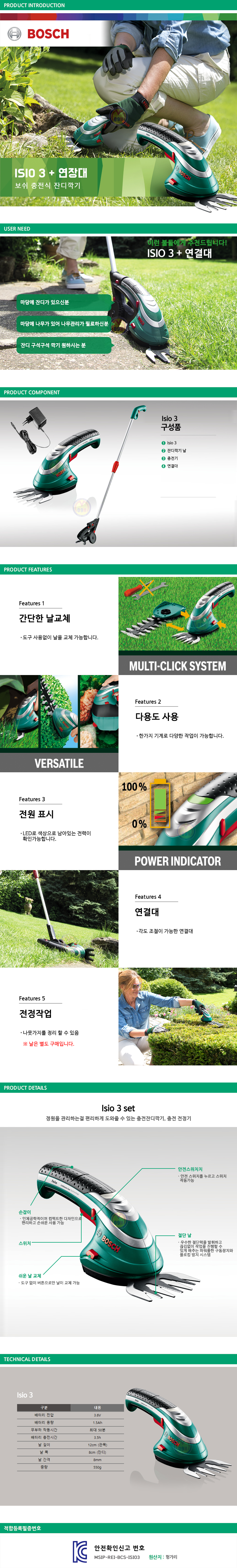 보쉬 3.6V 충전잔디깍기 전정가위 ISIO3 (손잡이포함) 06008331B3,C518-1382