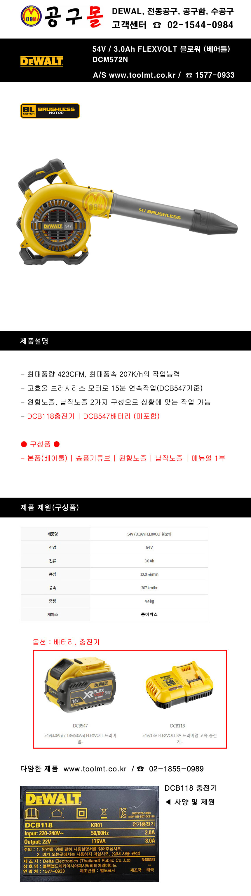 디월트 54V 충전블로워 (베어툴) DCM572N DEWALT, FLEXVOLT, 디월트, 충전송풍기, 충전청소기, 공구몰,C510-4639