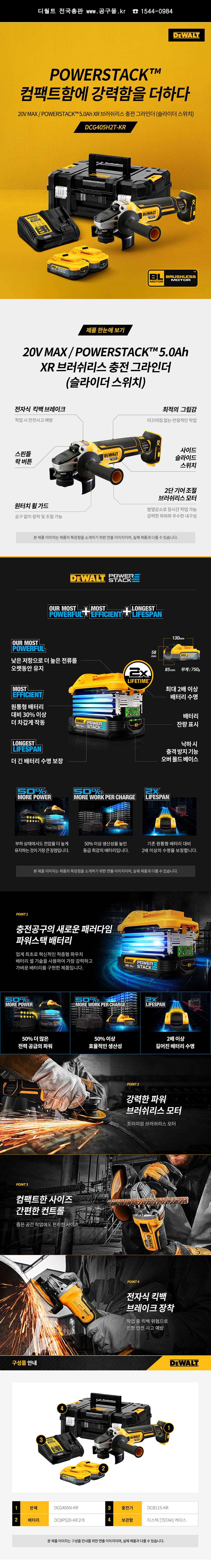 디월트 충전그라인더 DCG405H2T(18V/5.0Ah) BL (5) 파워스택, 공구몰, C 575-0562