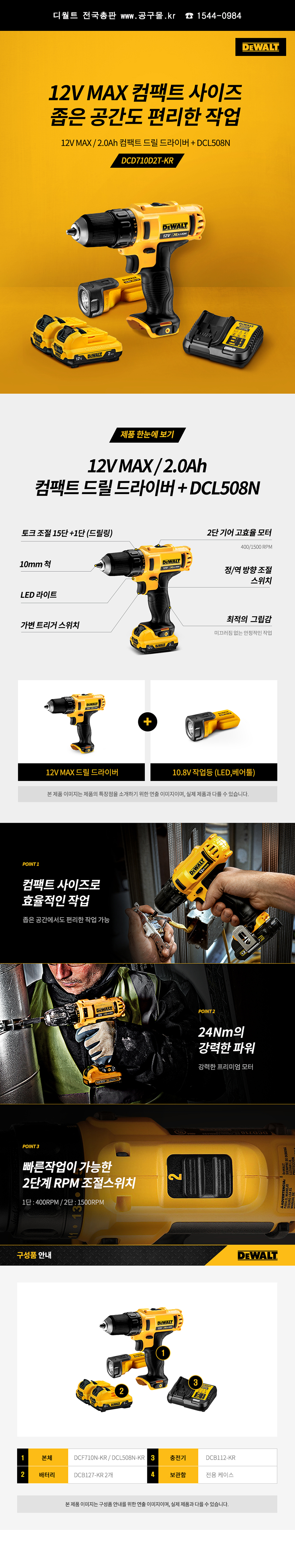 디월트 10.8V 충전드릴드라이버 DCD710D2T(2.0Ah2B) DEWALT, 공구몰, C509-1292
