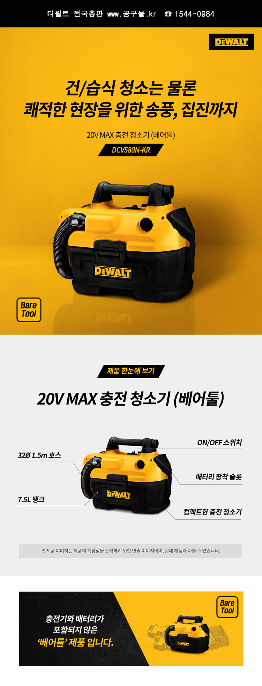디월트 충전청소기 DCV580N(베어툴 충전기 배터리 X), 무선집진기, 청소기,C510-2923