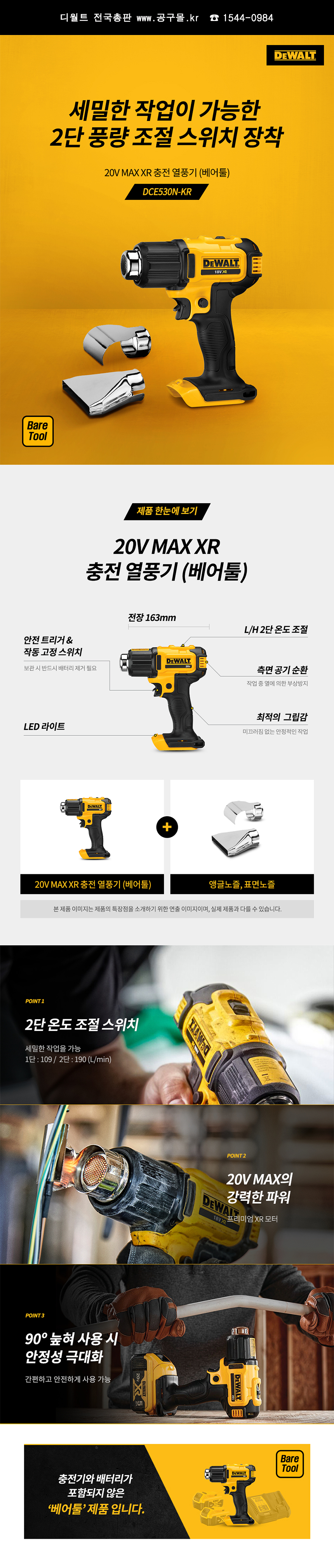 품절.디월트 충전열풍기 DCE530N 배어툴 (배터리,충전기 X), 무선열풍기,C510-5090