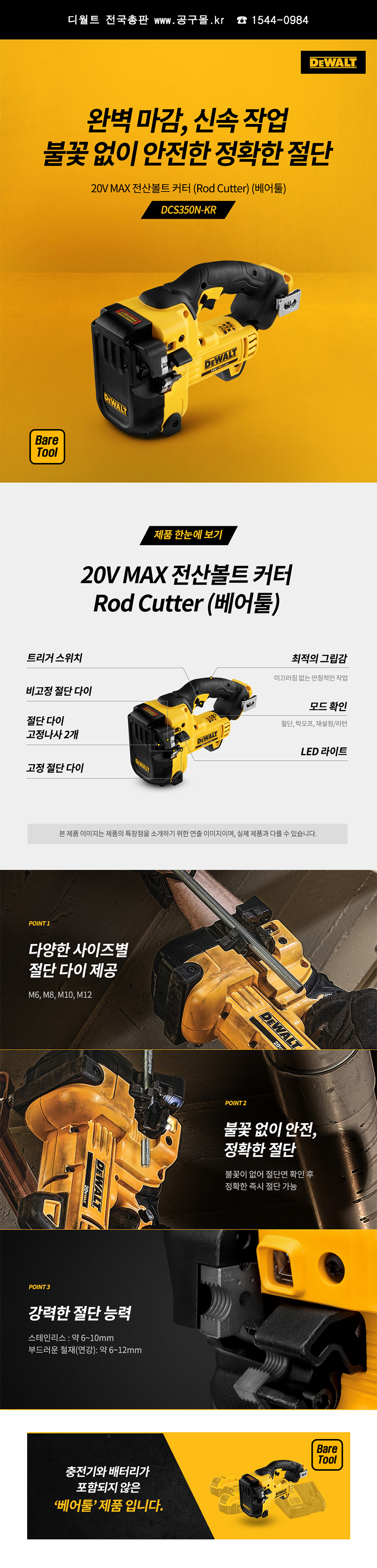 디월트 18V 전산볼트커터 (베어툴) mm 타입 DCS350N DEWALT, Rod Cutter, 볼트커터, 울산공구몰,C509-9300