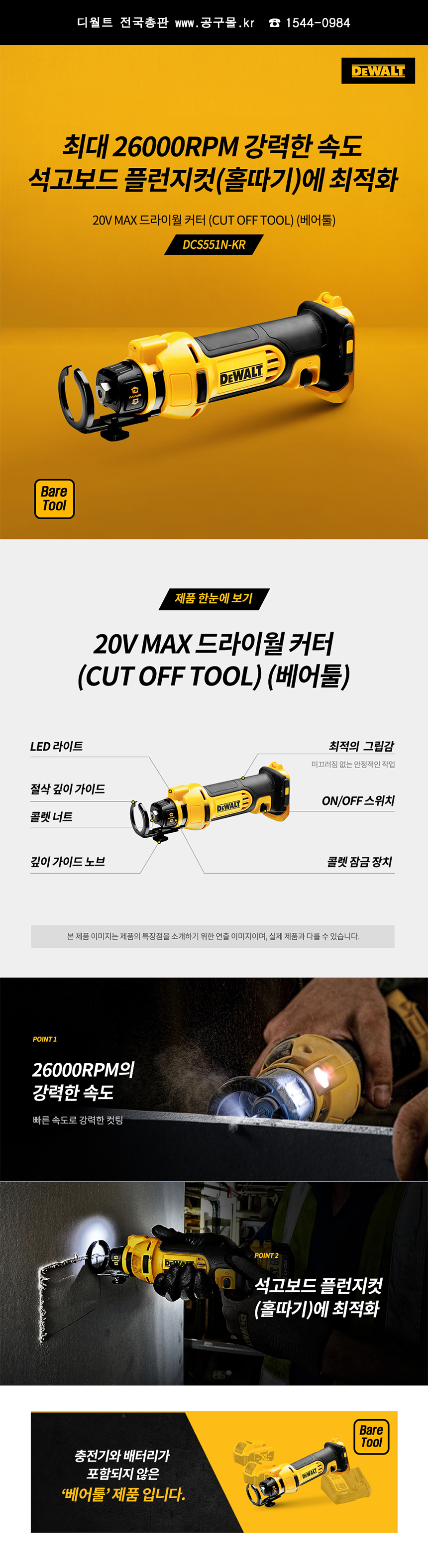 디월트 18V 충전드라이월커터 DCS551N (베어툴) 트리머, 라우터, 공구몰,C509-9692