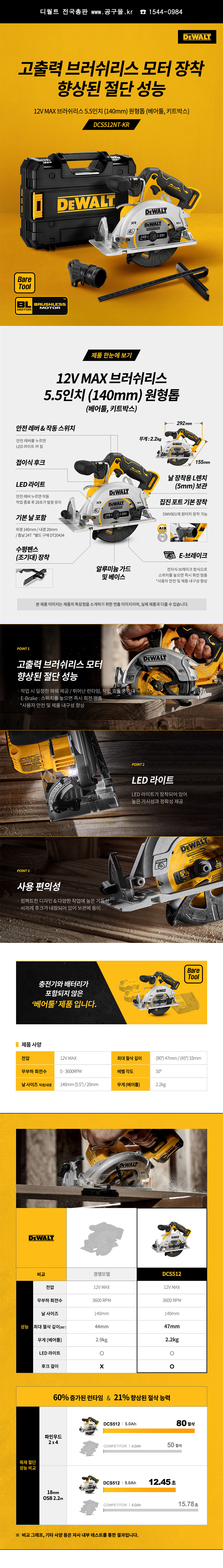 디월트 12V 충전원형톱 DCS512NT (베어툴) (5 1/2), 공구몰, C575-0650
