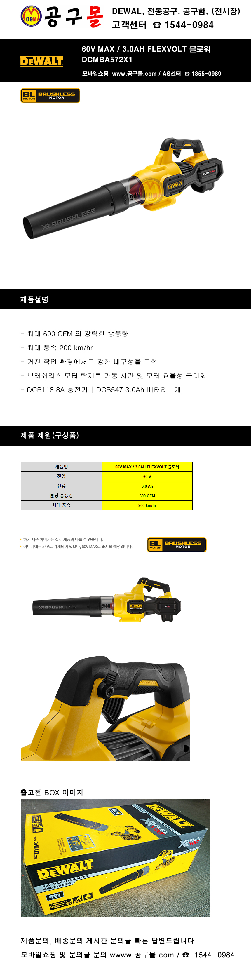 디월트 60V MAX FLEXVOLT 블로워 DCMBA572X1(3.0AH,1개) DEWALT, 디월트, 공구몰, C510-5638