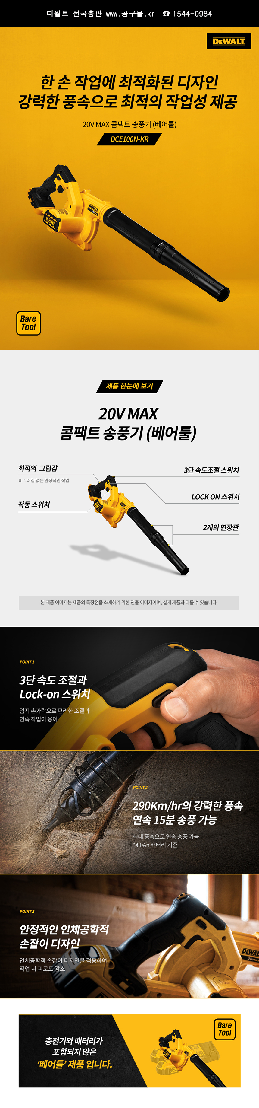디월트 18V 컴팩트 충전송풍기 (베어툴) DCE100N DEWALT, 디월트, 충전송풍기, 충전청소기, 공구몰,C509-6701