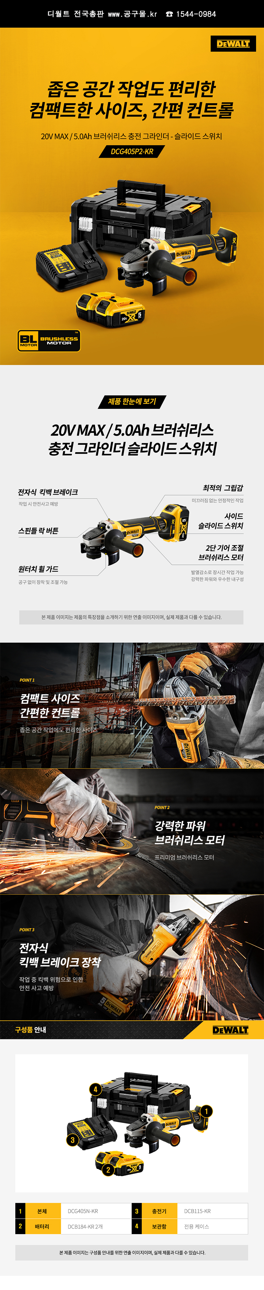 디월트 충전그라인더 DCG405P2 (18V-5.0Ah), 그라인더, 절단석, C510-2297