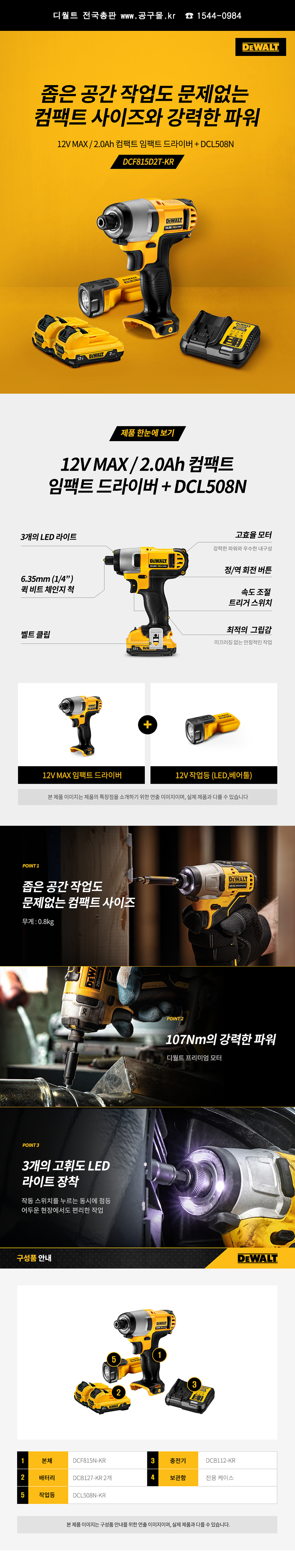 디월트 12V 충전콤보세트 DCK2110D2T (12V-2.0AH) DCF801 DCD701 충전드릴 충전임팩,C510-4541