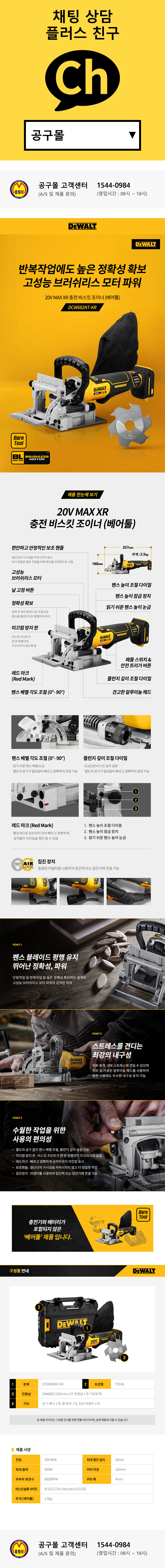 디월트 충전비스킷조이너 DCW682NT (20V-베어툴) 목공구 도미노
