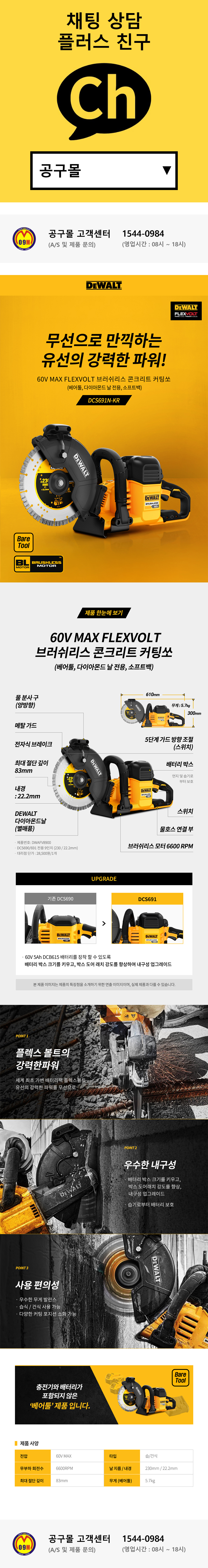 디월트 충전커팅쏘 DCS691N (60V-베어툴) 콘크리트 주철관 철근 절단기 컷팅기
