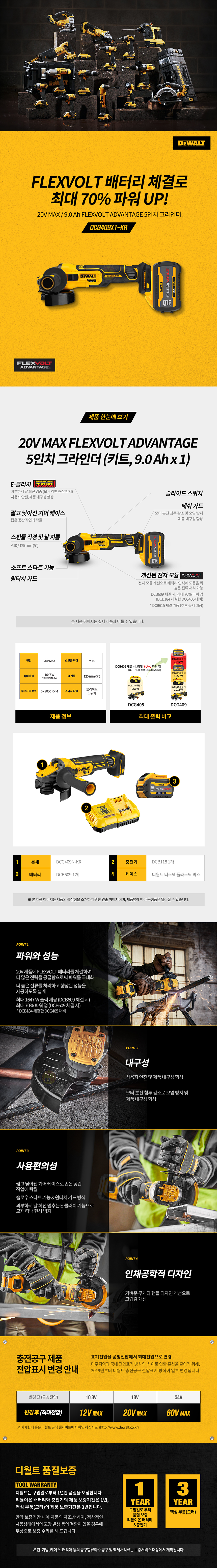 디월트 5 충전그라인더 DCG409X1 (20V-9Ah) 그라인더 충전절단기,C510-8778