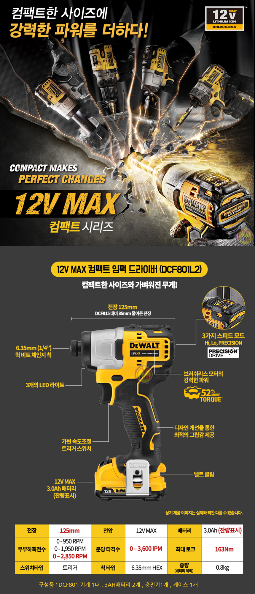 디월트 DCF801L2 (3.0AH) 12V 충전임팩트드라이버 (배터리잔량표시), 충전드릴, C510-5595