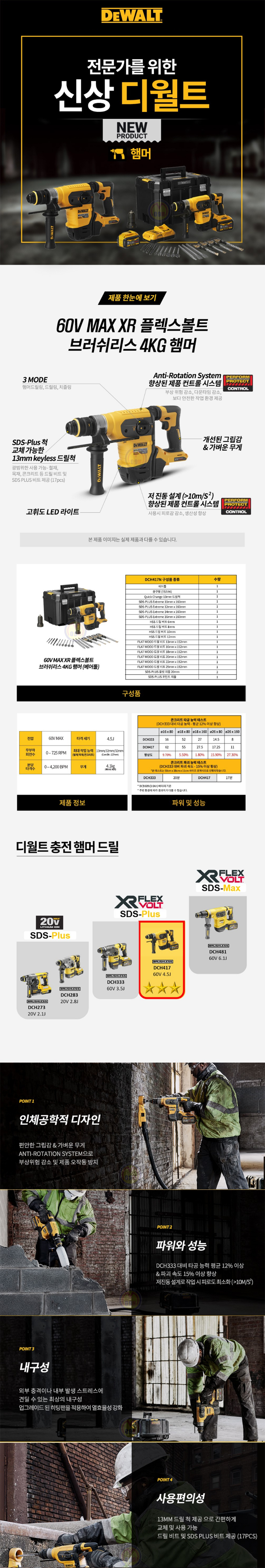 디월트 60V 충전햄머드릴 DCH417N (베어툴) 로타리함마, 해머드릴 SDS드릴,C510-7007