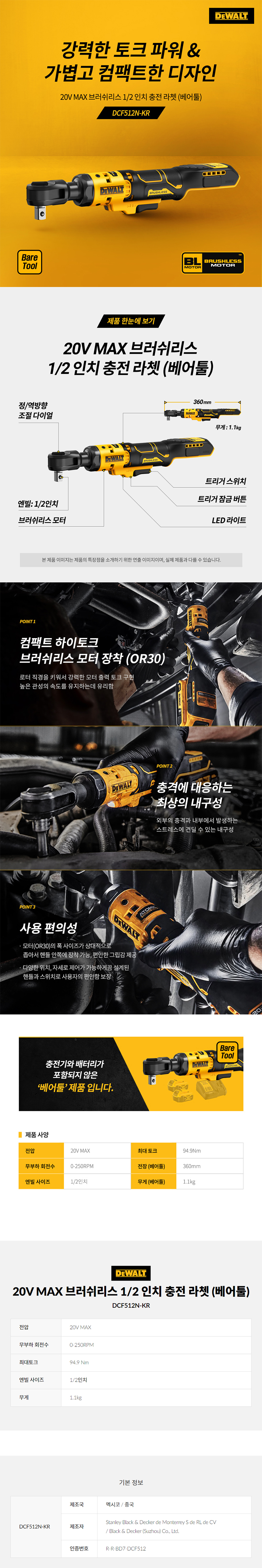 디월트 20V 충전임팩라쳇 DCF512N (20V-베어툴) 충전라쳇 충전임팩 라체트,C575-0146