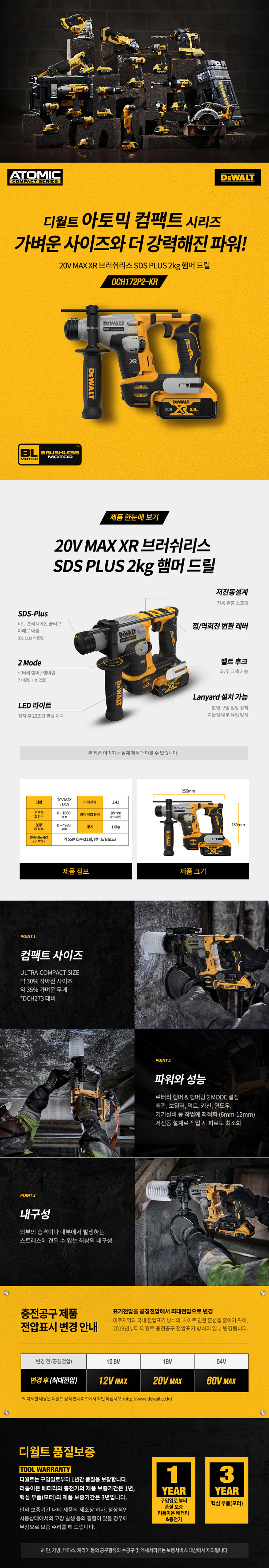 디월트 충전로타리해머 DCH172P2 (20V-5.0AH) 충전해머 햄머드릴 해머드릴 C510-7469