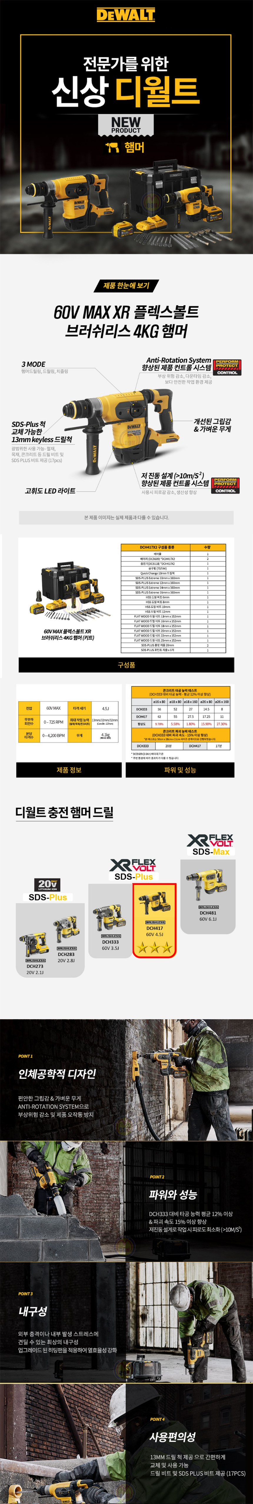 디월트 60V 충전햄머드릴 DCH417X2 (세트) 로타리함마, 해머드릴 SDS,C510-7034