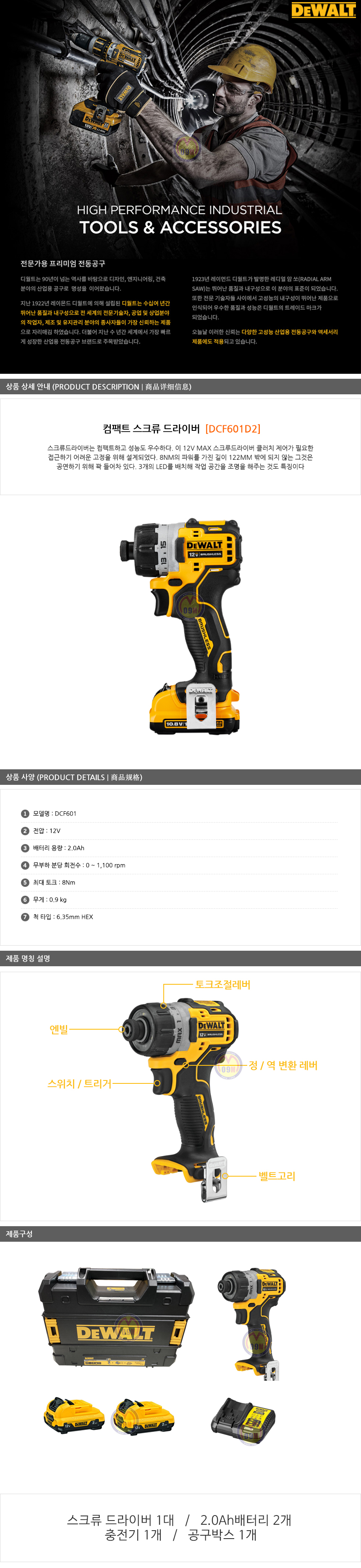 디월트 충전스크류드라이버 DCF601D2 (12V-2.0Ah), 충전드릴, 임팩드라이버, C510-3977