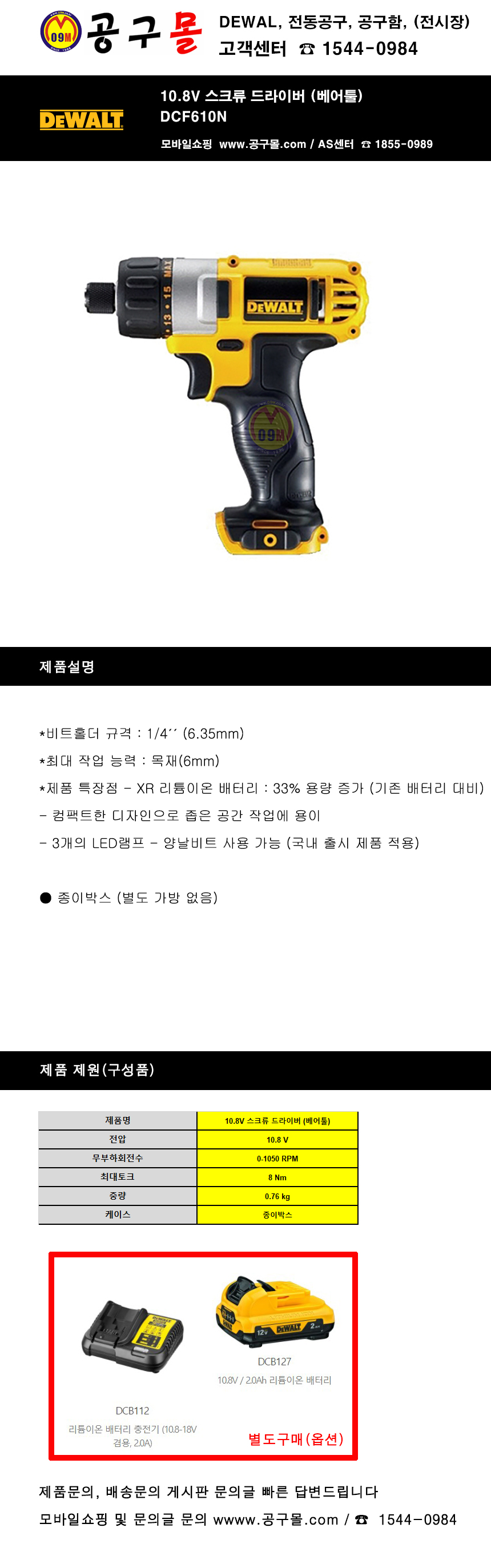디월트 10.8V 스크류드라이버 (베어툴) DCF610N DEWALT,디월트,공구몰,C509-7418