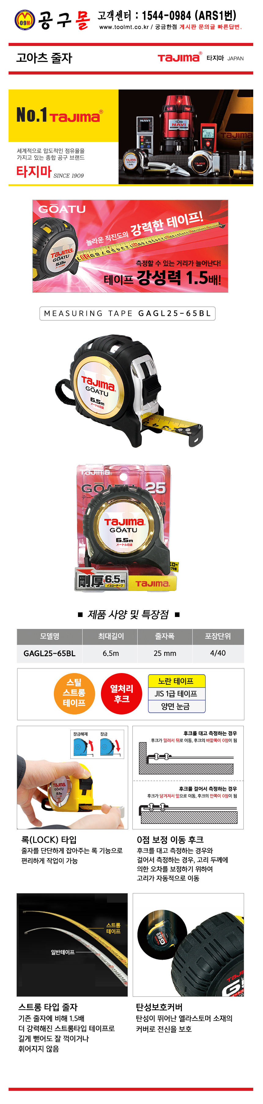 타지마 줄자 GAL25-65-6.5M (고아츠,자동) TAJIMA, 자동, 공구몰,141402454580