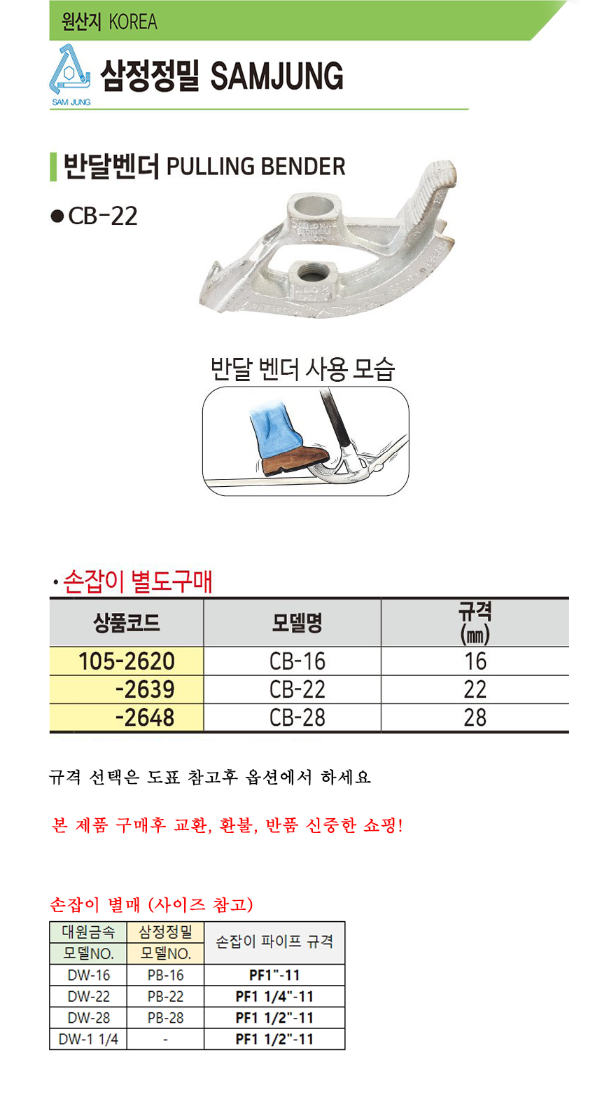 삼정정밀 반달벤더 28mm (CB-28) 파이프밴드, 공구몰