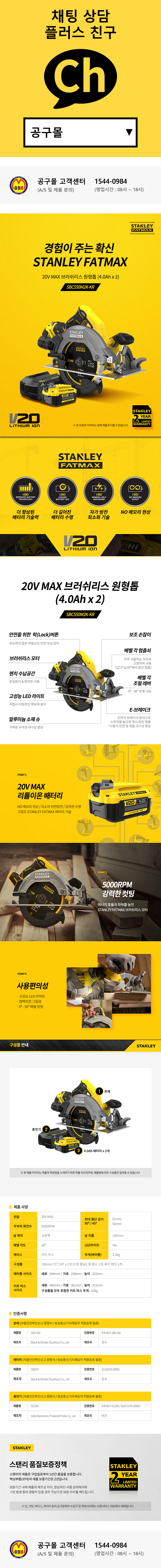 스탠리 20V MAX 충전원형톱 SBC550M2K (4.0AH세트) 충전스킬톱