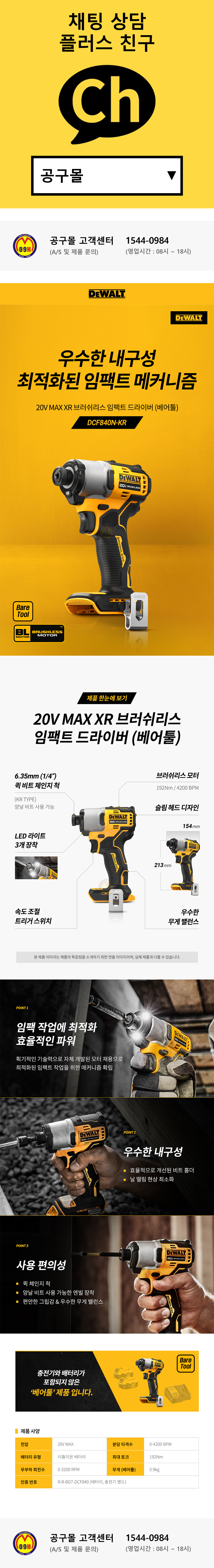 디월트 20V 충전임팩트드라이버 DCF840N (베어툴) 충전드라이버