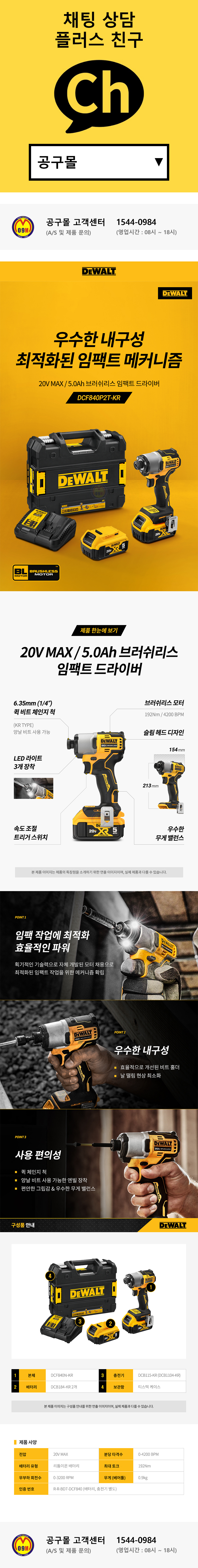 디월트 20V 충전임팩트드라이버 DCF840P2 (5.0AH 세트) 충전드라이버