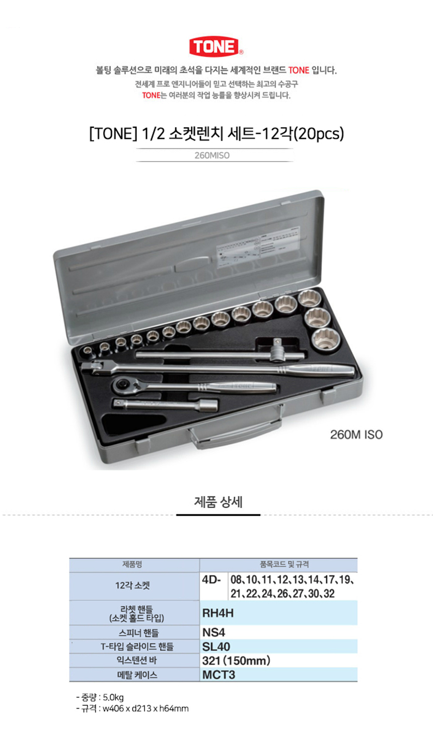 TONE 소켓렌치 1/2세트 260MISO(20pcs)MM-12각토네, 복스세트, 작업공구